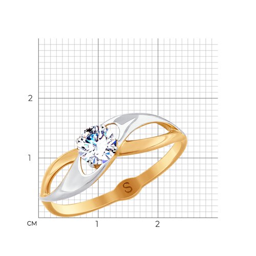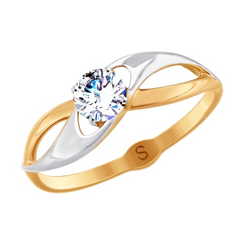 Кольцо с сияющим фианитом выполнено из красного и белого золота 585 пробы. Именно такие украшения универсально подходят к какому угодно образу и способны изящно завершить любой наряд. Изделие представлено брендом SOKOLOV. Вставки: 1 × Фианит недраг Бесцветный Круг 4.50 ~0,618 кар. В комплект поставки входит: