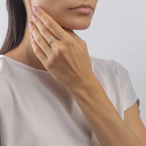 Кольцо, комбинированное золото, фианит, проба 585