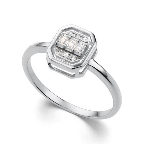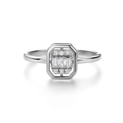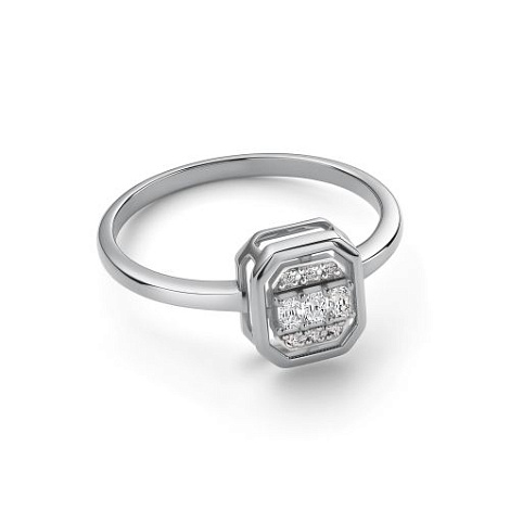 Роскошное кольцо выполнено из белого золота 585 пробы, украшено сияющими бриллиантами. Блеск благородного металла в сочетании с сияющими бриллиантами, привлекают внимание с первого вгляда. Дизайн украшения универсально подходит к какому угодно образу и способен изящно завершить любой наряд. Изделие представлено брендом "АЛЬКОР". Средняя характеристика камней на артикул: 6 Бриллиант Круг 57 0.024 3/5, 3 Бриллиант Багет 25 0.085 3/5 В комплект поставки входит: