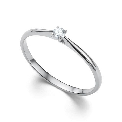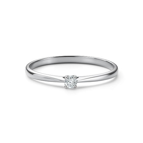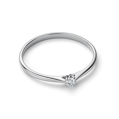 Помолвочное кольцо с сверкающим бриллиантом выполнено из белого золота 585 пробы
