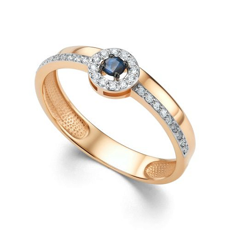 Роскошное кольцо, выполнено в сочетании красного и белого золота 585 пробы, украшено сапфиром синего цвета и сияющей россыпью белых бриллиантов