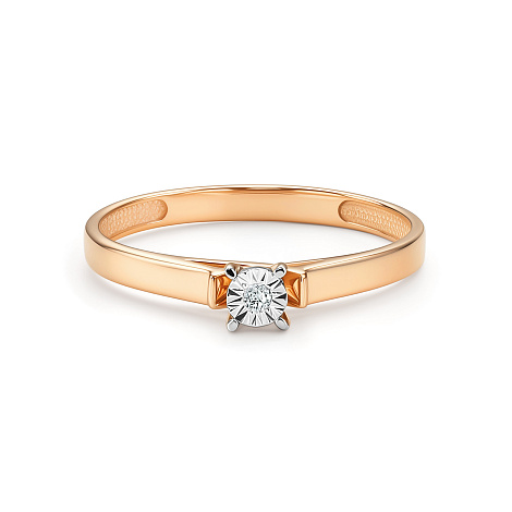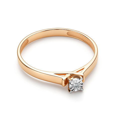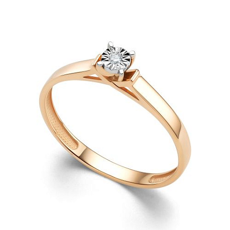 Роскошное кольцо, выполнено в сочетании красного и белого золота 585 пробы, украшено искрящимся бриллиантом. Закрепка бриллианта в белом золоте, придает ему объем и подчеркивает природную красоту и игру света. Изделие представлено брендом "Алькор". Средняя характеристика камней на артикул: 1 Бриллиант Круг 57 0.015 4/5 В комплект поставки входит: