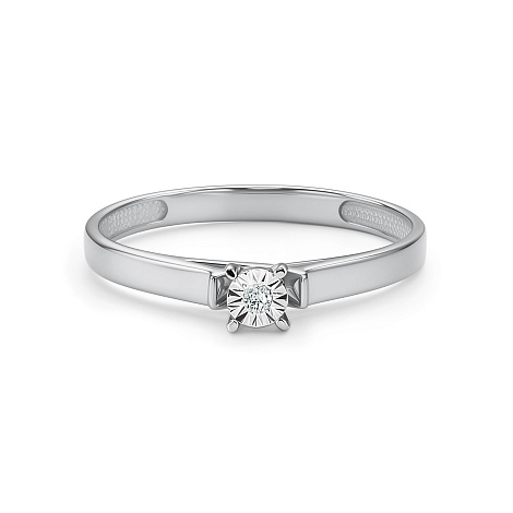 Романтичное помолвочное кольцо выполнено из белого золота с одним бриллиантом от бренда Алькор