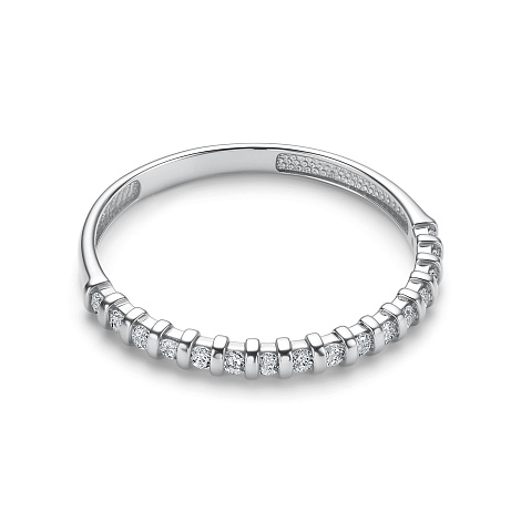 Стильное кольцо выполнено из белого золота 585 пробы, украшено великолепными сияющими бриллиантами