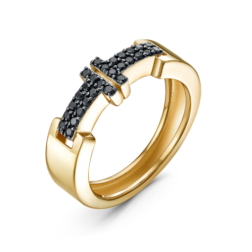 Стильное кольцо оригинального дизайна выполнено из жёлтого золота 585 пробы, украшено россыпью сияющих черных фианитов