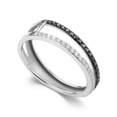 Роскошное кольцо выполнено из белого золота 585 пробы, украшено великолепными чёрными и бесцветными сияющими бриллиантами