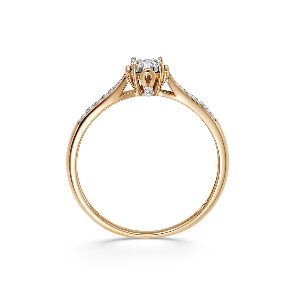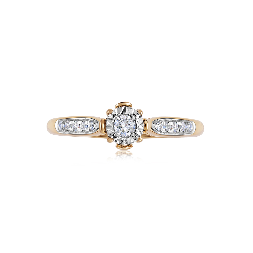 Роскошное кольцо выполнено в сочетании красного и белого золота 585 пробы, украшено великолепными сияющими бриллиантами