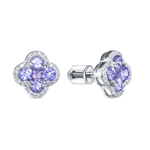 Серьги с нежными танзанитами, красоту которых подчёркивает дорожка сверкающих бриллиантов, выполнены из белого золота 585 пробы