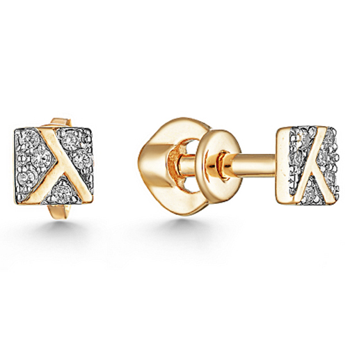 Стильные серьги - пусеты квадратной формы выполнены с сочетанием красного и белого золота 585 пробы, укращенные россыпью фианитов