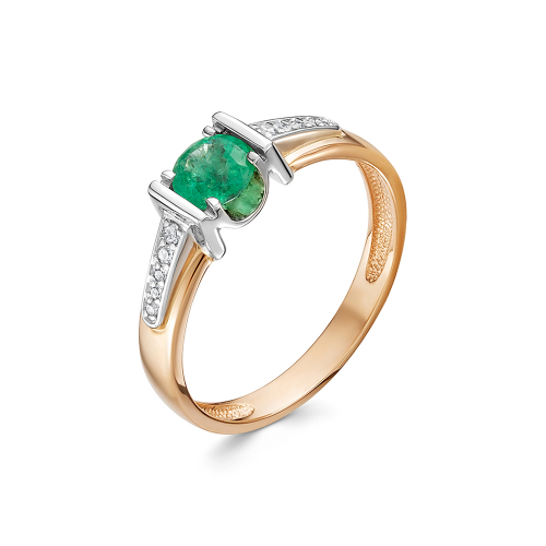 Кольцо, комбинированное золото, изумруд, проба 585