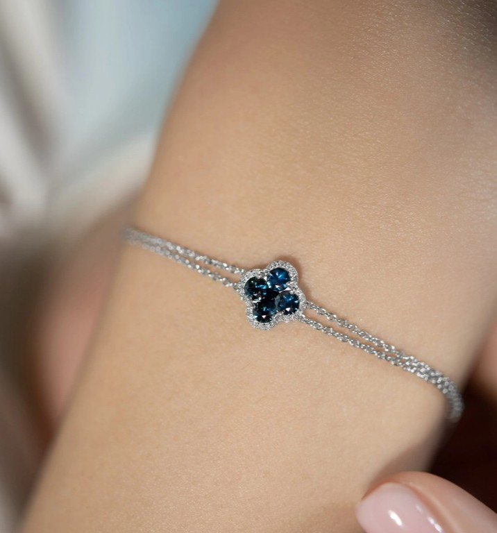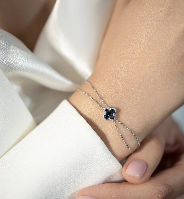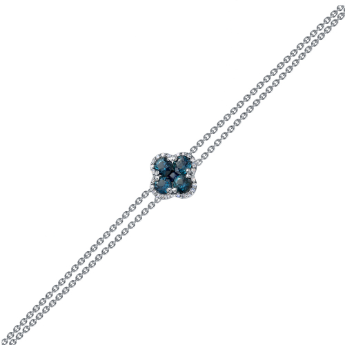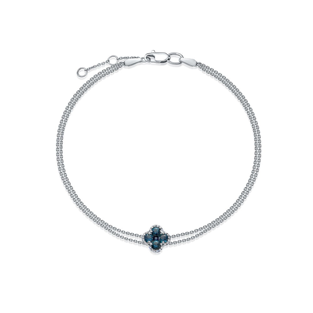 Элегантный двойной цепочный браслет из белого золота 585 пробы, украшенный изысканной вставкой с голубыми сапфирами и сверкающими бриллиантами