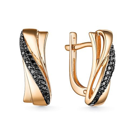 Стильные серьги, выполненные с контрастным сочетанием сверкающих чёрных бриллиантов и красного золота 585 пробы