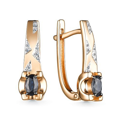 Роскошные серьги, выполнены в сочетании красного и белого золота 585 пробы, с сапфирами синего цвета в окружении искрящейся россыпи бриллиантов. Закрепка бриллиантов в белом золоте, придает камням объем и подчеркивает их природную красоту и игру света. Тип замка - английский, самый надежный и удобный. Изделие представлено брендом "Алькор". Средняя характеристика камней на артикул: 16 Бриллиант Круг 17 0.041 2/3, 2 Сапфир Овал 0.61 2/2 В комплект поставки входит: