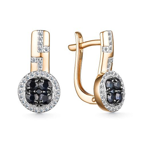 Роскошные серьги, выполнены в сочетании красного и белого золота 585 пробы, с сапфирами синего цвета в окружении искрящейся россыпи бриллиантов