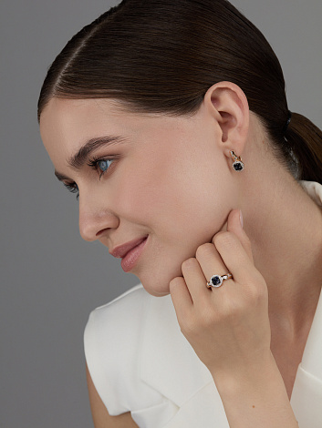 Роскошные серьги, выполнены в сочетании красного и белого золота 585 пробы, с сапфирами синего цвета в окружении искрящейся россыпи бриллиантов. Закрепка бриллиантов в белом золоте, придает камням объем и подчеркивает их природную красоту и игру света. Тип замка - английский, самый надежный и удобный. Изделие представлено брендом "Алькор". Средняя характеристика камней на артикул: 2 Сапфир Круг 0.07 2/2, 8 Сапфир Круг 0.687 2/2, 60 Бриллиант Круг 17 0.184 2/3 В комплект поставки входит: