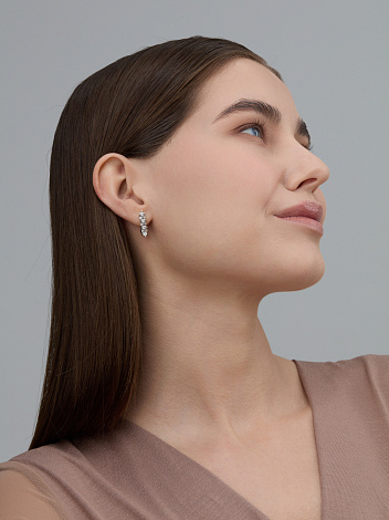 Элегантные серьги, украшенные дорожками бриллиантов, выполнены из белого золота 585 пробы