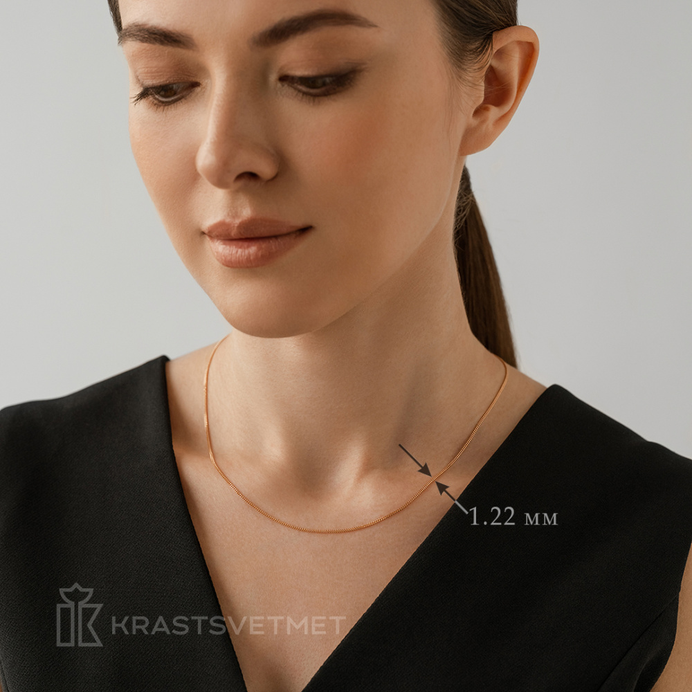 Цепочка из красного золота 585 пробы с традиционным панцирным плетением — это идеальное украшение, которое понравится как мужчинам, так и женщинам. Панцирное плетение отличается плотной конструкцией, где звенья расположены в одной плоскости, что придает изделию целостность и элегантность. Цепочка изготовлена из качественного золота, подчеркивающего свой натуральный тёплый оттенок и утончённо смотрящегося в любом интерьере. Её универсальность позволяет легко интегрироваться в разнообразные стилевые концепции, будь то строгий деловой костюм или свободный. Цепочка послужит как самостоятельным украшением, так и основой для кулонов или знаков принадлежности. Диаметр проволки 0,35мм. Представлено брендом КРАСЦВЕТМЕТ. В комплект поставки входит: