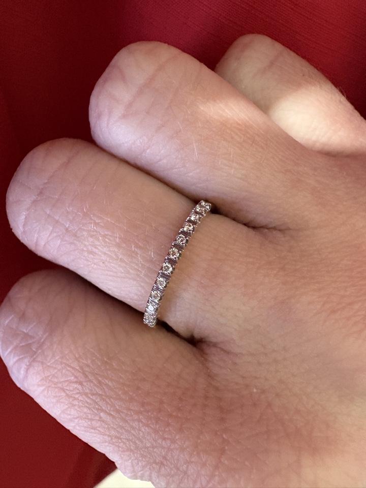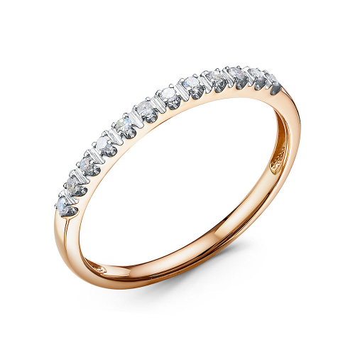 Кольцо, украшенное дорожкой сверкающих бриллиантов, выполнено из красного золота 585 пробы