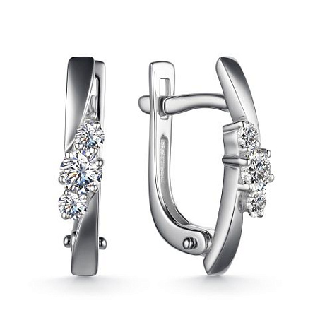 Серьги с сверкающим бриллиантом в центре, красоту и блеск которого подчёркивает дорожка бриллиантов, выполнены из белого золота 585 пробы