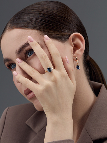 Роскошные серьги, выполнены в сочетании красного и белого золота 585 пробы, с сапфирами синего цвета в окружении искрящейся россыпи бриллиантов. Закрепка бриллиантов в белом золоте, придает камням объем и подчеркивает их природную красоту и игру света. Тип замка - английский, самый надежный и удобный. Изделие представлено брендом "Алькор". Средняя характеристика камней на артикул: 28 Бриллиант Круг 17 0.088 2/3, 2 Сапфир Круг 0.09 2/2, 8 Сапфир Маркиз 0.865 2/2 В комплект поставки входит: