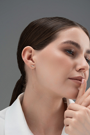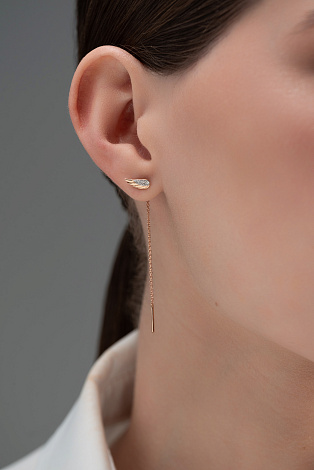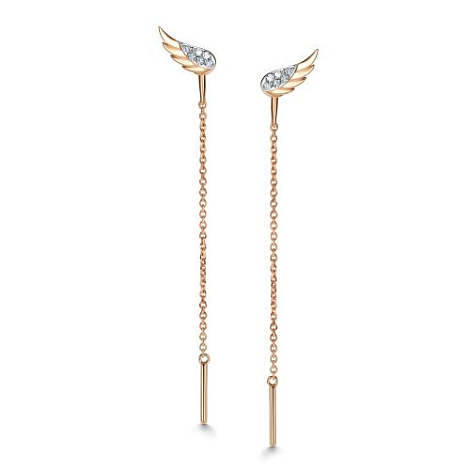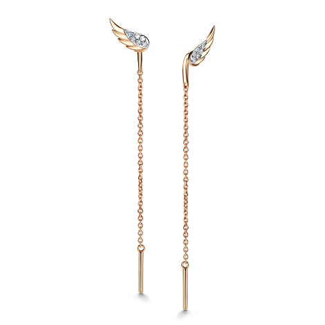 Изящные серьги - протяжки с бриллиантами в фантазийном касте в виде крыльев, выполнены в сочетании красного и белого золота 585 пробы