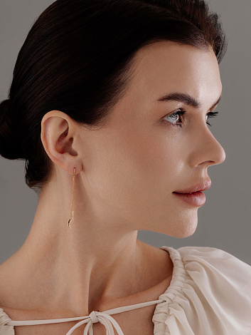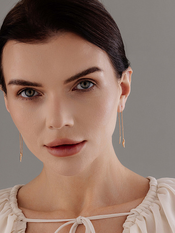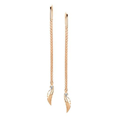 Изящные серьги - протяжки с бриллиантами в фантазийном касте в виде крыльев, выполнены в сочетании красного и белого золота 585 пробы