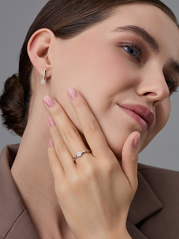 Роскошные серьги из белого золота 585 пробы с бриллиантами. Россыпь камней придает серьгам одновременно изящность и воздушный объем. Тип замка - английский, самый надежный и удобный. Модель лаконичная, с очень комфортной посадкой на ухо, за счет расположения замковой части ниже, чем декоративной части серьги. Средняя характеристика вставок: 14 Бриллиант Круг 57 0.174 4/5 В комплект поставки входит: