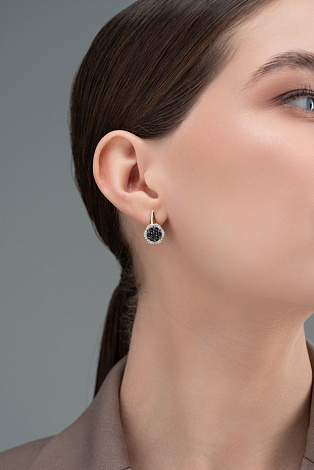 Роскошные серьги, выполнены в сочетании красного и белого золота 585 пробы, с сапфирами синего цвета в окружении искрящейся россыпи бриллиантов. Закрепка бриллиантов в белом золоте, придает камням объем и подчеркивает их природную красоту и игру света. Тип замка - английский, самый надежный и удобный. Изделие представлено брендом "Алькор". Средняя характеристика камней на артикул: 14 Сапфир Круг 1.139 2/2, 48 Бриллиант Круг 57 0.256 4/5 В комплект поставки входит: