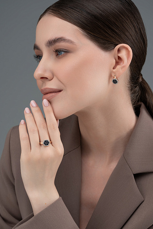 Серьги, комбинированное золото, сапфир, проба 585