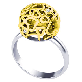 Нежное кольцо, выполнено в сочетании жёлтого и белого золота 585 пробы, украшено сияющими бриллиантами.