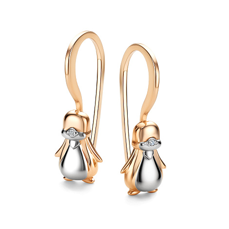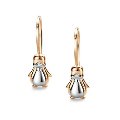 Детские серьги в форме пингвинов изготовлены из комбинированного золота: корпус из красного, а животик из белого золота