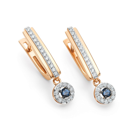 Серьги с сапфирами овальной формы огранки, насыщенный синий цвет которых подчёркивает двойная дорожка бриллиантов, выполнены из красного и белого золота 585 пробы