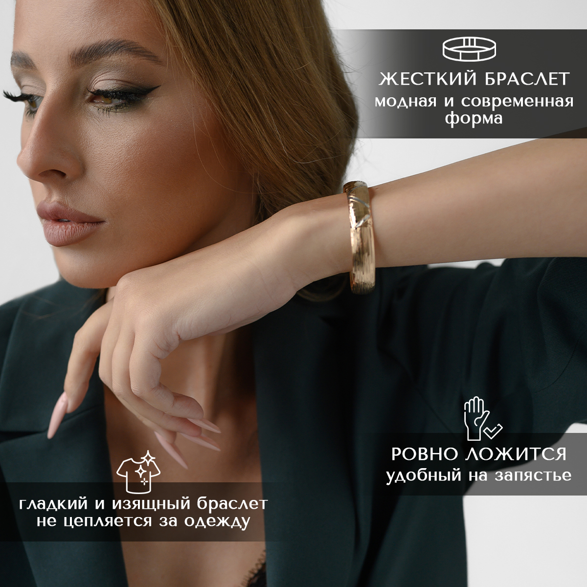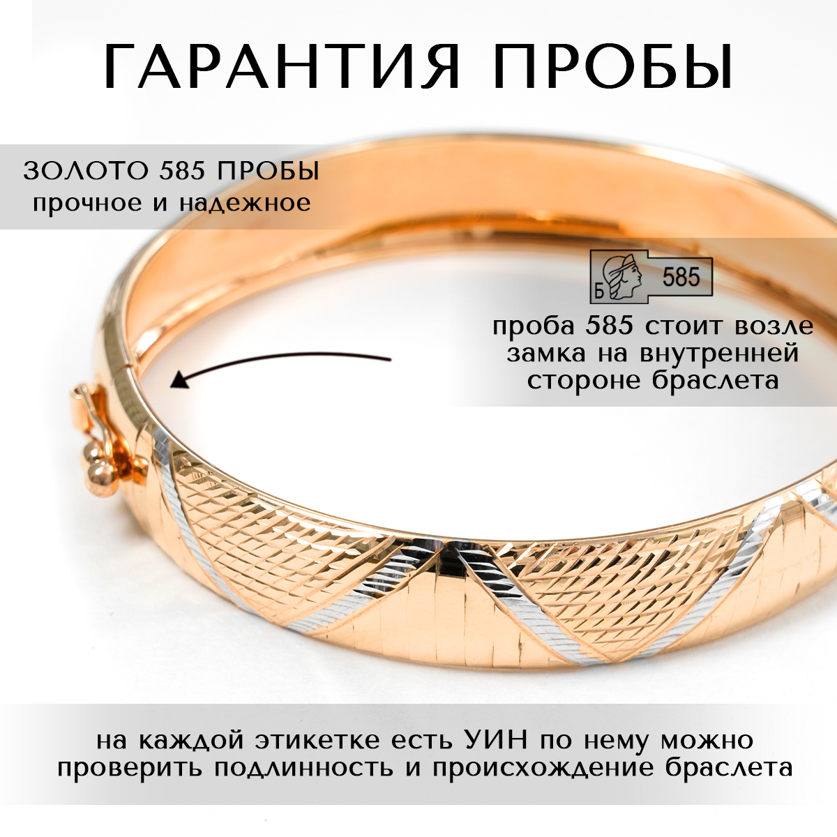 Давно присматривалась к жестким браслетам, и вот решилась на покупку) Сидит очень удобно, безумно красивый, золото белое и красное 585 пробы. Спасибо большое!