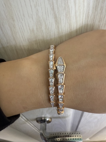 Стильный браслет в виде змеи, выполнен из красного и белого золота 585 пробы, укрешен сияющими фианитами по всей окружности
