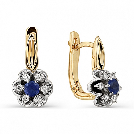 Роскошные серьги из красного и белого золота 585 пробы, с натуральными сапфирами и бриллиантами, от бренда Алькор.Тип замка - английский, самый надежный и удобный.