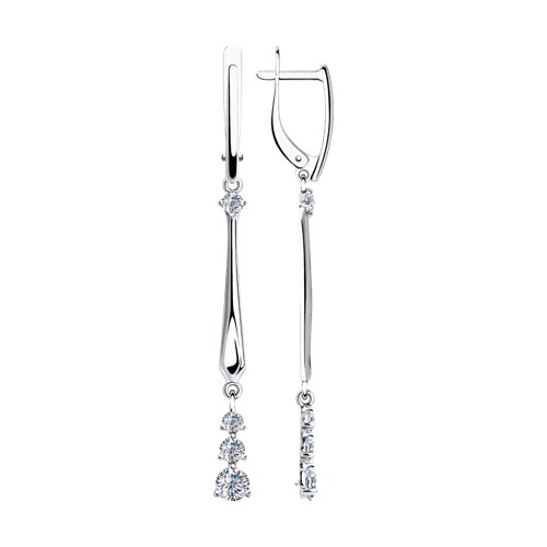 Стильные серьги с подвесками, украшенными сверкающими фианитами, выполнены из белого золота 585 пробы