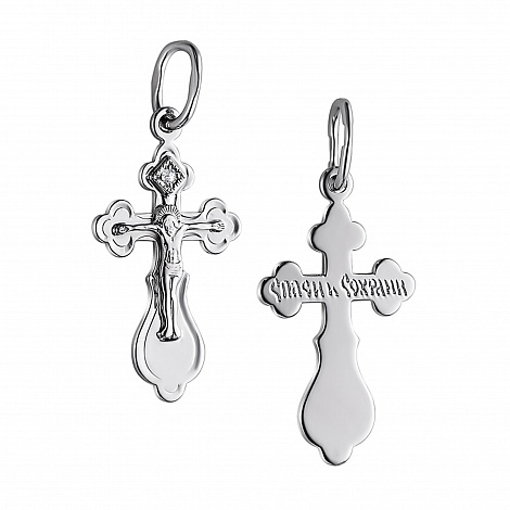 Подвеска в виде изящного православного крестика выполнена из белого золота 585 пробы, украшена бриллиантом
