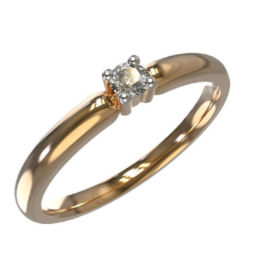 Помолвочное кольцо с сверкающим бриллиантом выполнено из красного золота 585 пробы