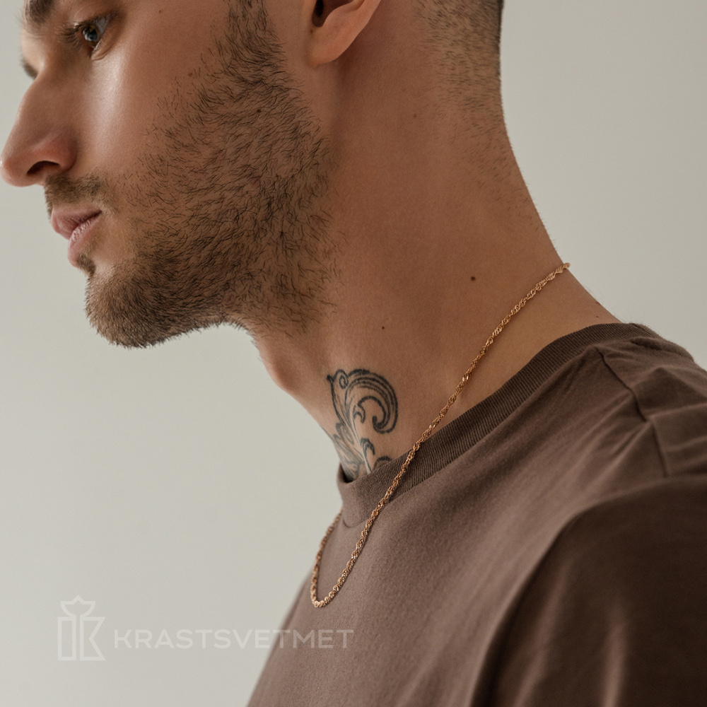 Цепь из красного золота 585 пробы с утончённым плетением «Сингапур» и изящной отделкой алмазной грани