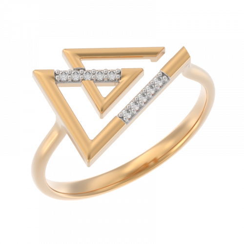 Стильное геометричное кольцо, украшенное дорожкой фианитов, выполнено с сочетанием красного и белого золота 585 пробы