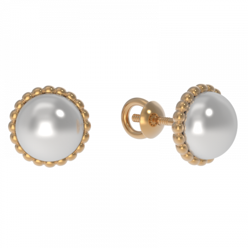 Объемные изящные серьги-пусеты с белым жемчугом выполнены из красного золота 585 пробы