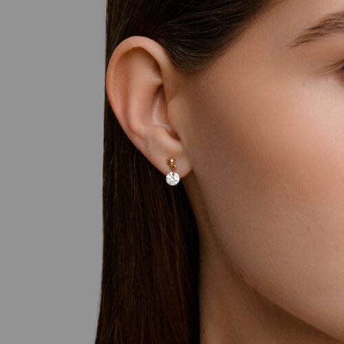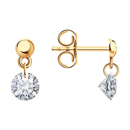 Серьги-пусеты из красного золота с подвесными фианитами – элегантное украшение. Отличаются лаконичным дизайном, подвесные фианиты добавляют изделию блеск и изысканность. Серьги станут прекрасным дополнением как к повседневному образу, так и к более торжественным нарядам. Представлено брендом SOKOLOV. Вставки: 2 × Фианит недраг Бесцветный Круг просверленный 5.00 ~1,594 кар В комплект поставки входит: