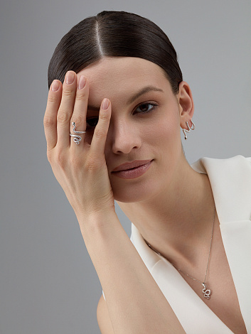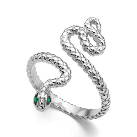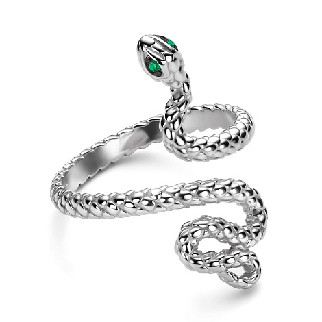 Кольцо выполнено в виде изящной змеи, сделанное из серебра 925 пробы