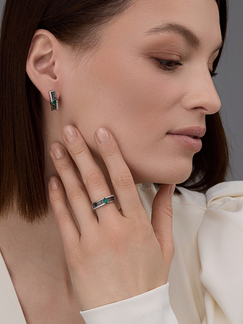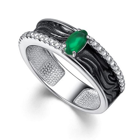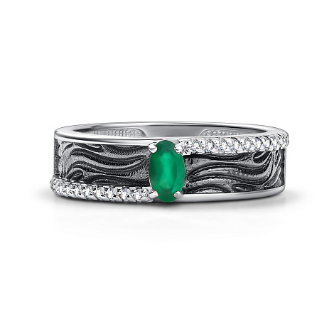 Серебряное кольцо с агатом и бриллиантами – это уникальное сочетание природных материалов, создающее изысканный и стильный аксессуар. Такой аксессуар станет отличным выбором как для повседневного ношения, так и для особых случаев, подчеркивая ваш индивидуальный стиль. Представлено брендом АЛЬКОР. Вставки: 1 Агат зеленый Зеленый Овал 0,201, 24 Фианит Белый Круг 0,216 В комплект поставки входит: