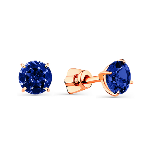 Яркие и стильные серьги-пусеты с сапфировыми корундами выполнены из красного золота 585 пробы