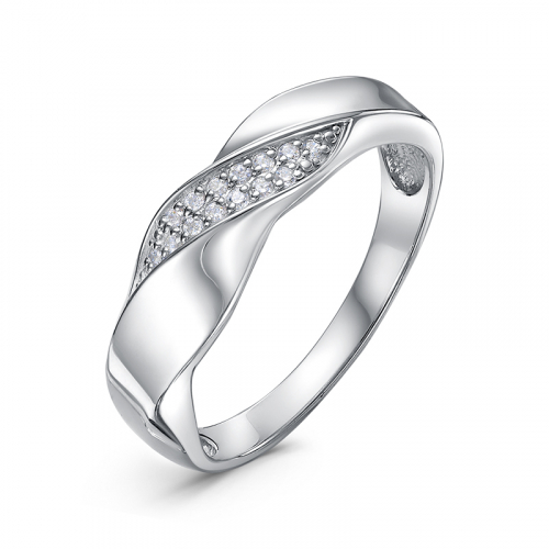Элегантное серебряное кольцо украшено аккуратной дорожкой из сверкающих фианитов, создающих изысканный блеск