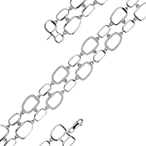 Роскошный женский браслет из белого золота 585 пробы с объемными звеньями, украшенными дорожками сверкающих бриллиантов, — это воплощение изысканности и благородства