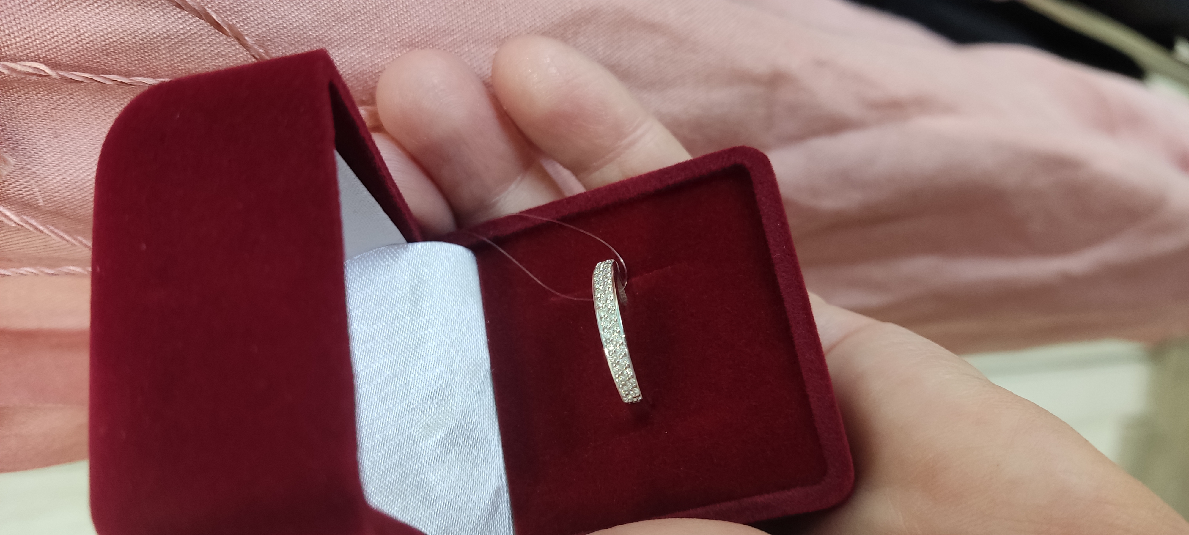 Очень рада,что выбрала это кольцо – воплощение мечты! Белое золото идеально отполировано, бриллианты подобраны безупречно по размеру и чистоте. Крепления очень надежные, можно не бояться потерять камни. Дорожка из бриллиантов сияет при любом освещении. Видно, что работа выполнена с любовью и вниманием к деталям. Рекомендую всем, кто ценит качество и элегантность! !!