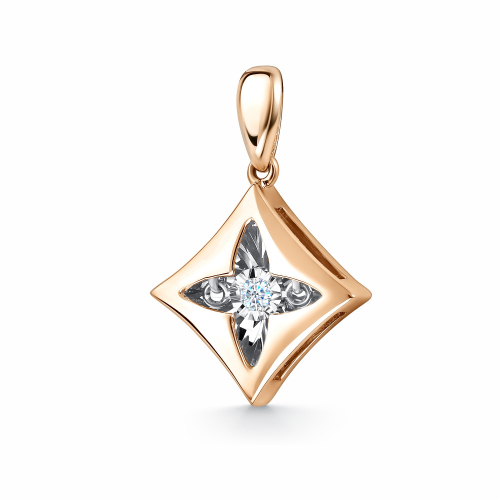 Роскошная подвеска выполнена из красного и белого золота 585 пробы, украшена сияющим бриллиантом
