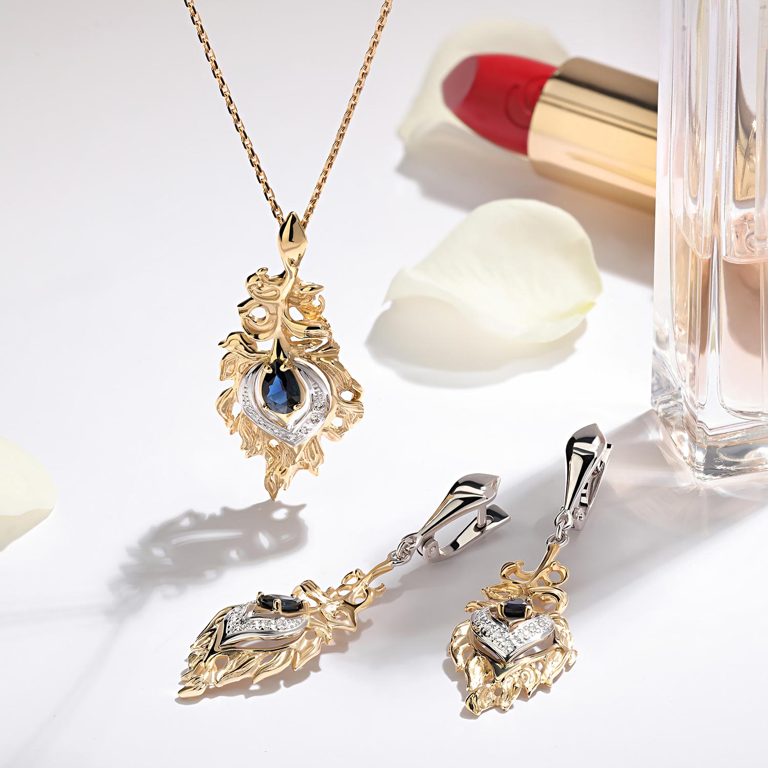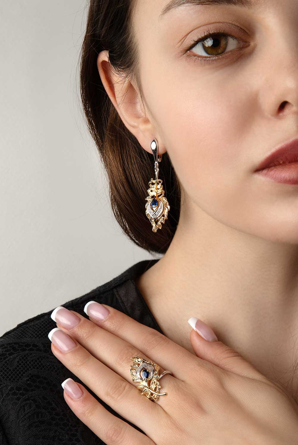 Изящные удлинённые серьги очаровывают сочетанием благородства белого и солнечного тепла жёлтого золота 585 пробы. Элегантная форма украшена великолепием сапфиров, подчеркнутых сверканием безупречных бриллиантов, создавая идеальный баланс цвета и блеска. Изделие представлено брендом: АЛЬДZЕНА. Средняя характеристика камней на артикул: 14 Бр Кр 57А 1.2 4/5 0,853 ct, 2 Сапфир груша 6.0*4.0 3/2 0.86ct.